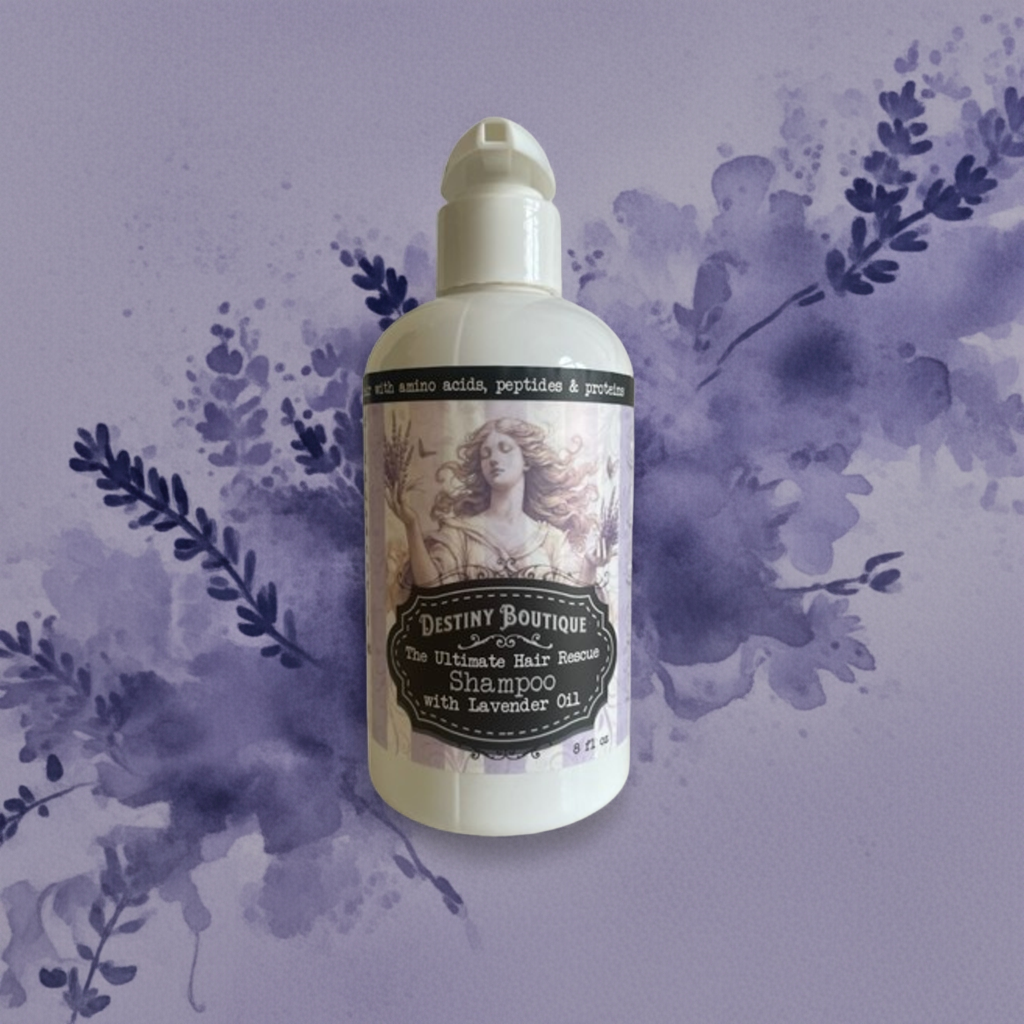 Destiny Boutique’s Lavender Shampoo doesn’t just look pretty—it performs magic on your strands. Inside is a powerhouse formula bursting with: